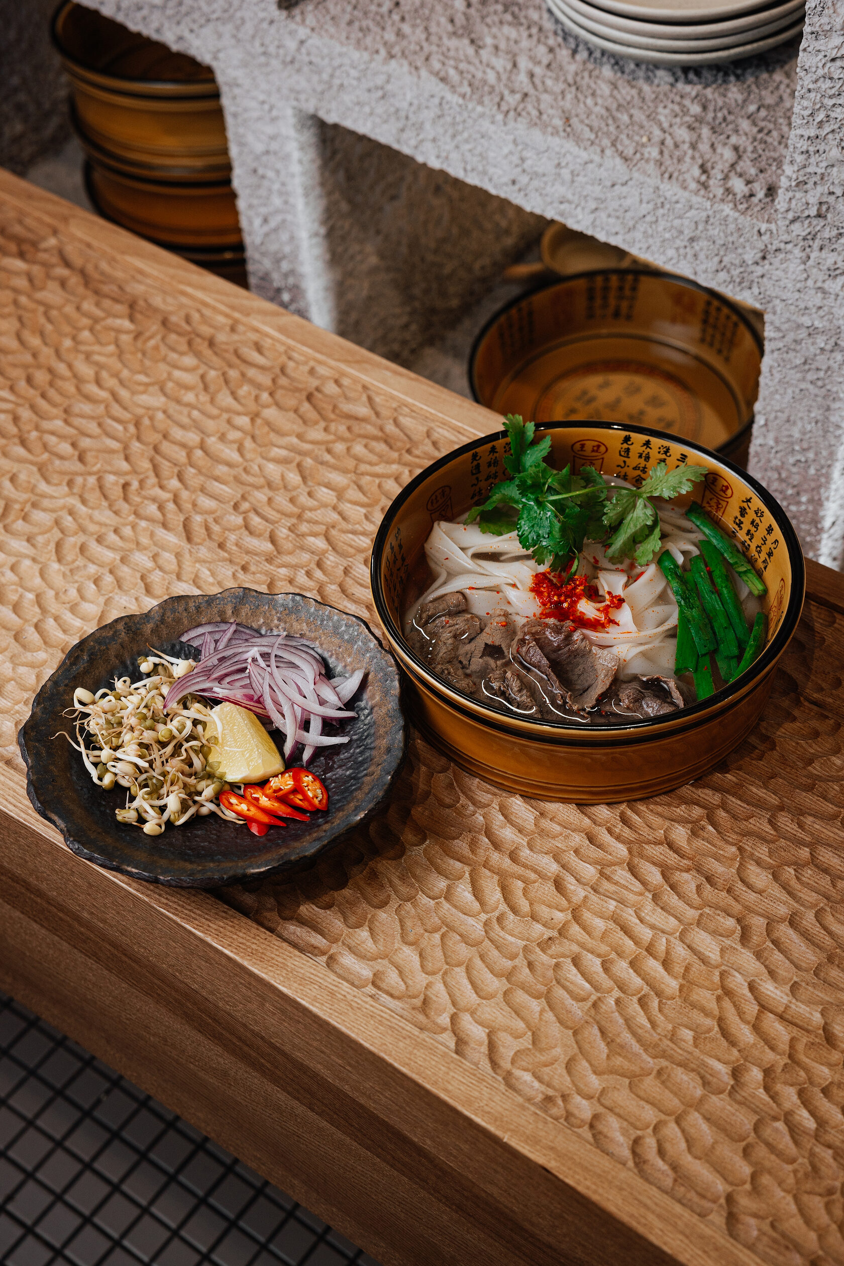 Насыщенный пикантно-соленый суп, в основе которого говяжий бульон, рисовая лапша и большое количество специй. Фобо имеет ярко-выраженный теплый аромат корицы и аниса, сбалансированный свежей зеленью и лаймом.